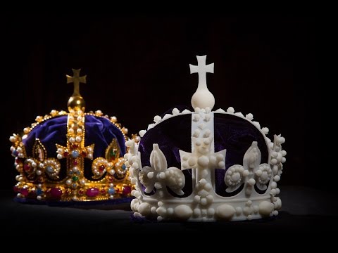 The crown was scanned at the Hampton Court Palace using a combination of structured light 3D scanning and cross polarised photography, and following processing of the data into a workable 3D model file, was printed by CRDM using 3D Systems' Stereolithography (SLA) and Selective laser sintering (SLS) techniques. The crown’s delicate shape and fine details made this process a particular technical challenge.