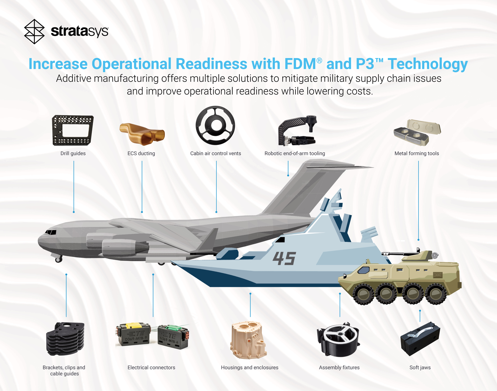 “Through Stratasys Direct, we combine Stratasys technology with production-scale additive manufacturing services and deep engineering expertise to help defence organisations validate and produce components that keep mission-critical systems operational.”