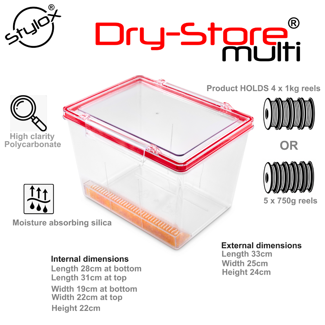 Stylox Ltd is the British based inventor of the Dry-Store multi, a bespoke solution for filament storage. Designed specifically for 4x1KG or 5x750g reels of 3D printer filament, the Dry-Store multi will help extend filament lifespan and improve performance.